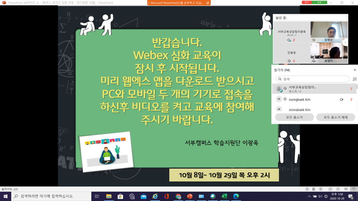 수강생을 대상으로 웹엑스 교육을 하는 모습