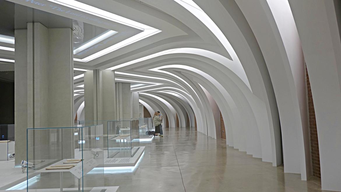 상설전시실은 하얀 동굴에 들어선 듯한 분위기를 만든다.