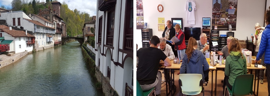 기차표를 끊고 시간이 남아 차를 한잔 마셨다. 세계 각국에서 산티아고로 가는 사람들이 삼삼오오 모여 차를 마신다. 나이, 국적, 성별에 상관없이 서로 다른 언어로 손짓 몸짓으로 왜 산티아고 가는지 등등 이야기를 나누면서 길동무가 되었다.  길동무들과 함께 생장에 도착해  순례자 여권을 만들었다. 산티아고 대성당까지 800킬로를 걸어서 가는 여행의 시작이다.