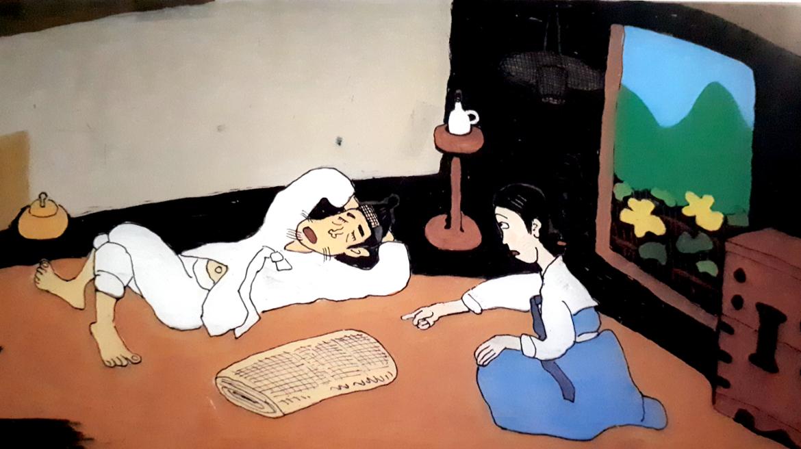 하기야 어쩌겠는가, 타고나기를 어리석고 게으른 사람을 누가 바꿔놓을 수 있을까? 영감의 아내처럼 그러려니 하고 사는 것이 본인에게 훨씬 더 이로울 것이다. 미운 짓을 하는 사람들도 이런 맘이 되고나면 원망할 것도 잔소리 할 것도 없어진다. 내 맘에 맞는 사람이 되기를 바라는 욕심을 내려놓고 그림 속 배경들이 보여주는 간결함과 화사한 색채들을 마음속에 들여놓으면 시끄러운 마음에서 벗어날 수 있다.