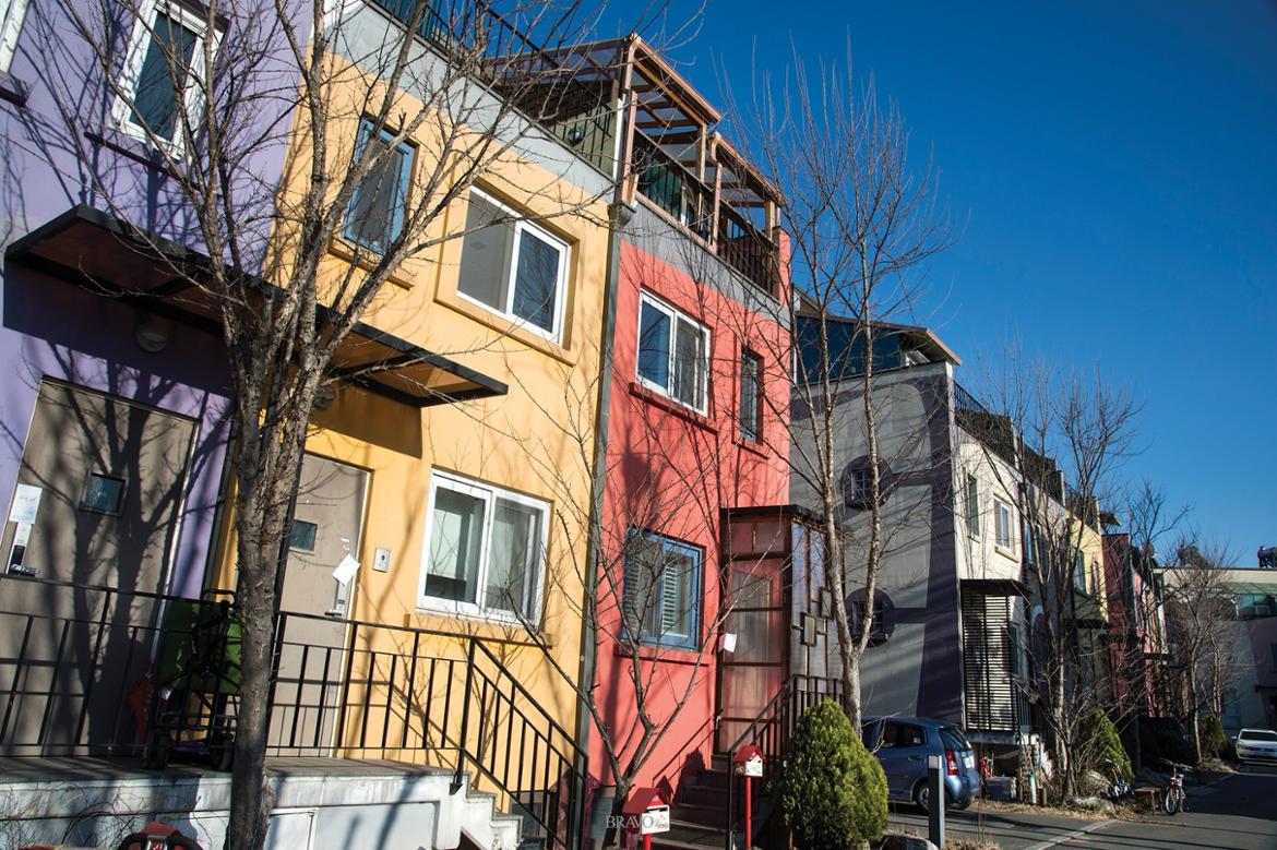 파주 운정 신도시를 지나다 보면 마치 만화에서 튀어나온 듯 알록달록한 집들을 볼 수 있다. 바로 도시농부 타운하우스(이하 도시농부) 1, 2차 단지다. 오솔길처럼 낸 길을 따라 옹기종기 집들이 모여 있다. 곳곳에 도시농부 사람들이 이용할 수 있는 텃밭도 보였다. 현재 5단지까지 분양 완료 됐는데 가격은 3억원 대로 알려져 있다.