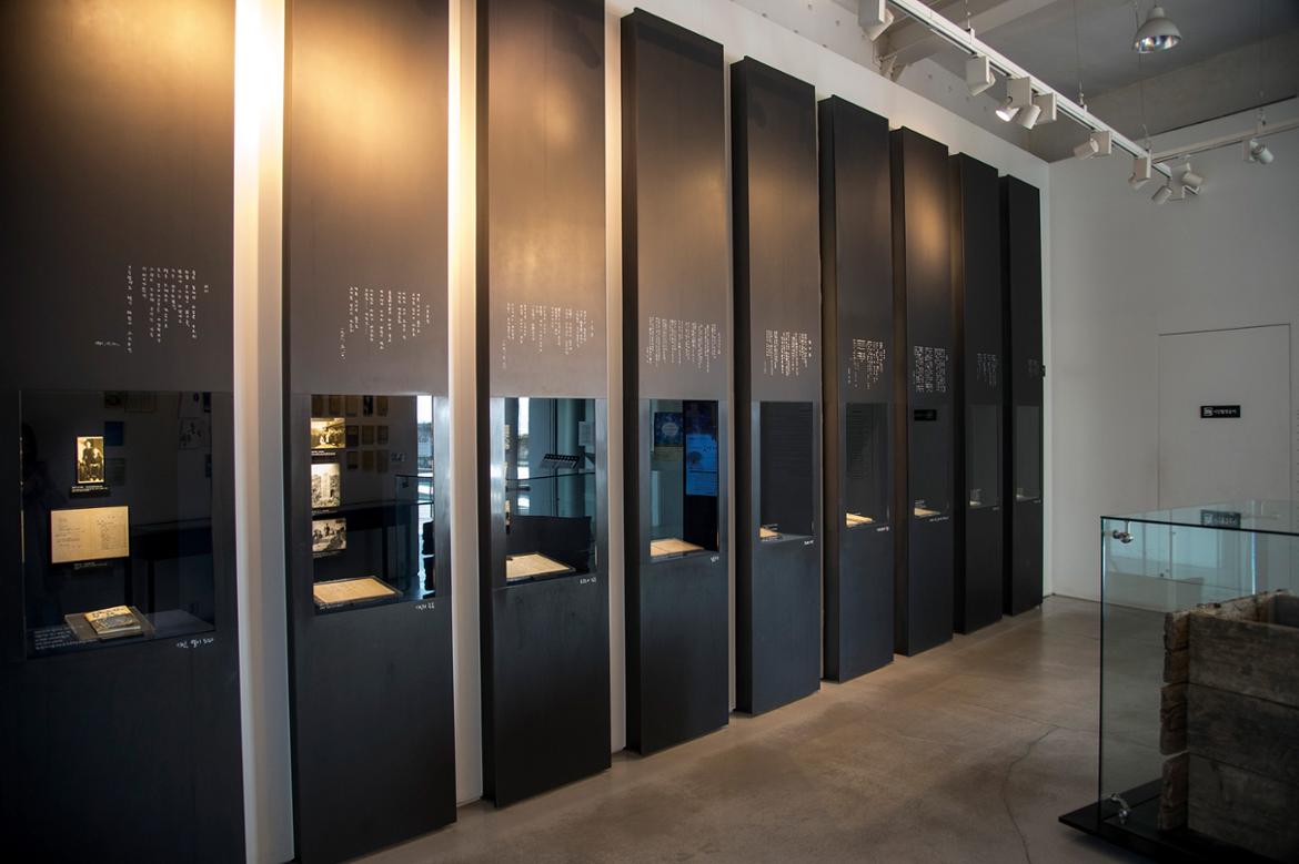 제1 전시실에는 윤 시인의 사진과 시(영인본) 등 각종 문서와 만주 북간도 명동촌 생가에서 가지고 온 우물 목판이 전시돼 있다. ‘창씨개명’을 하기 전 윤 시인이 쓴 ‘참회록’ 영인본 원고지에서는 일제 강점기 시인으로서 갈등이 고스란히 적힌 낙서도 찾을 수 있다.