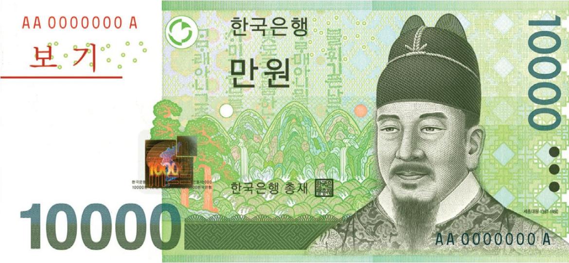 우리나라 화폐 속 가장 위대한 인물은 세종대왕이다. 현 화폐 모델 중 원에서 환으로, 100원에서 1만원으로 화폐단위와 액면을 자유롭게 넘나든 유일한 인물이다. 특히 세종대왕은 1960년 제2 공화국의 출범과 함께 당시 1000환권의 모델이던 이승만 대통령과 자리바꿈을 하였고 그 이듬해인 1961년에는 500환의 주인공이 되었다. 1973년에는 1만원권 지폐의 모델로 발탁되어 명실상부 우리나라 화폐의 ‘슈퍼모델’이 된 것이다.