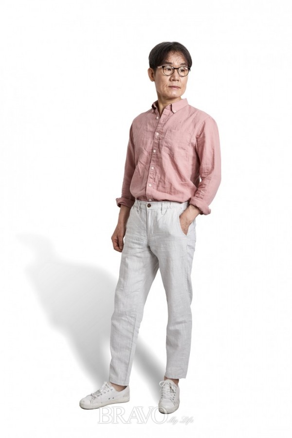 핑크 린넨 셔츠로 깔끔하고 댄디하게
