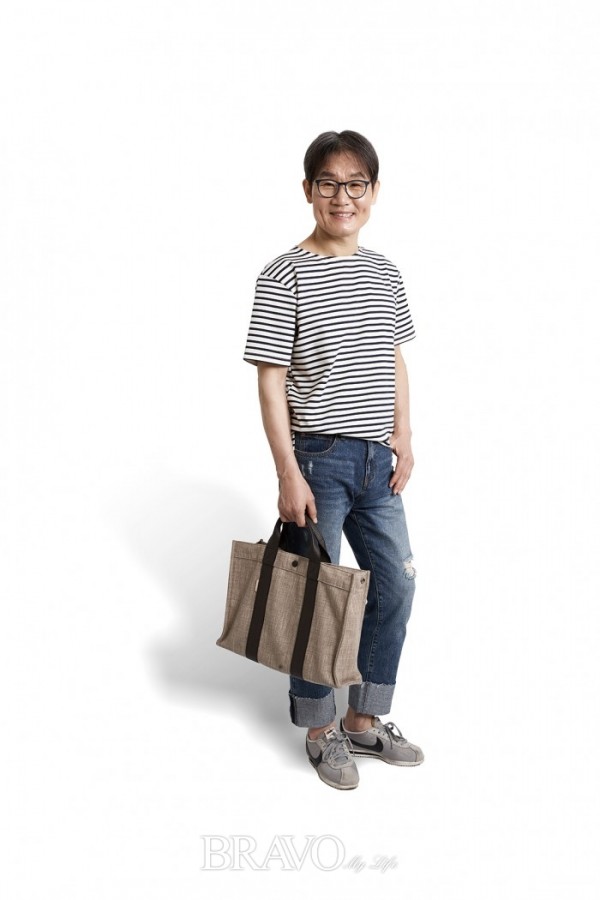 여름 패턴 하면 단연 스트라이프다. 스트라이프 셔츠에 청바지, 운동화로 스포티함을 연출했다. 스트라이프 셔츠는 청바지, 반바지, 면바지 가릴 것 없이 잘어울리는 여름 전천후 아이템이다.