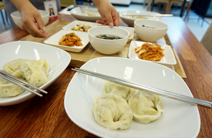 7. 밀어둔 만두피에 소를 넣고 계란 흰자를 발라 빚은 후 15~20분 찌거나 삶는다.