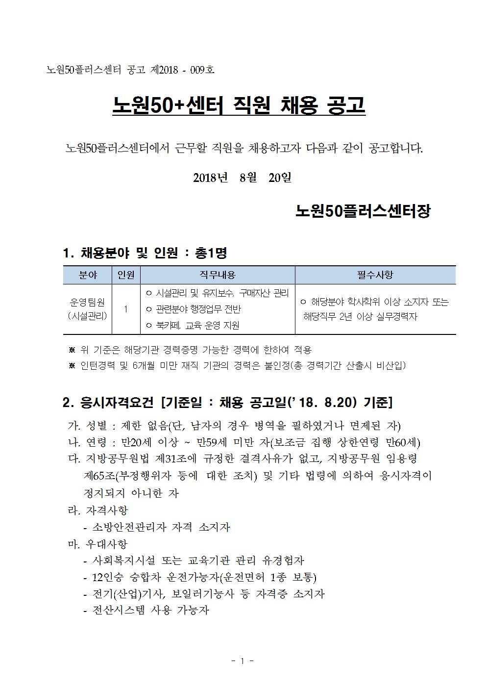 서울시 노원센터 | [채용] 노원50플러스센터 직원 채용 공고
