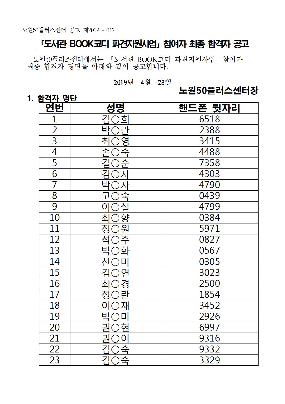 [발표] 「도서관 BOOK코디 파견지원사업」참여자 최종 합격자 공고