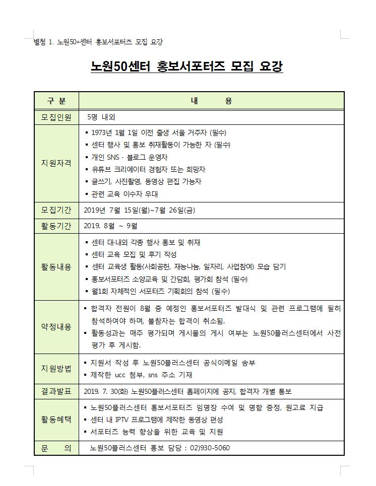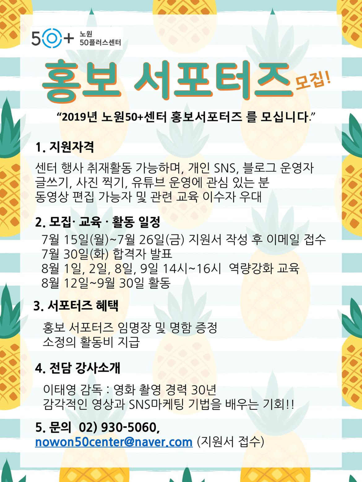 서울시 노원센터 | [모집] 2019년 노원50+센터 홍보서포터즈 모집