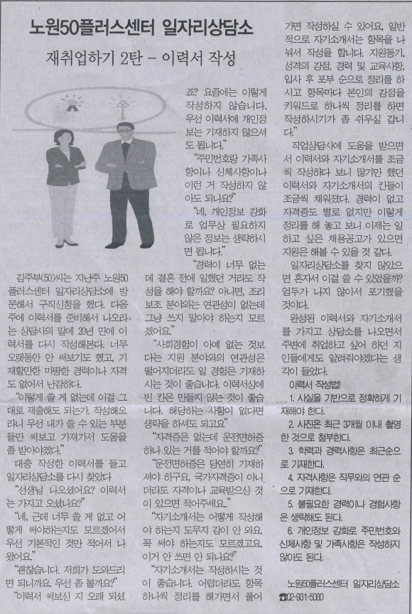 2019년 7월 22일(월) 노원신문에 노원50+센터의  "일자리상담소" 기사가 소개되었습니다.