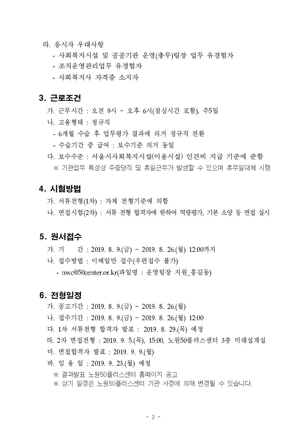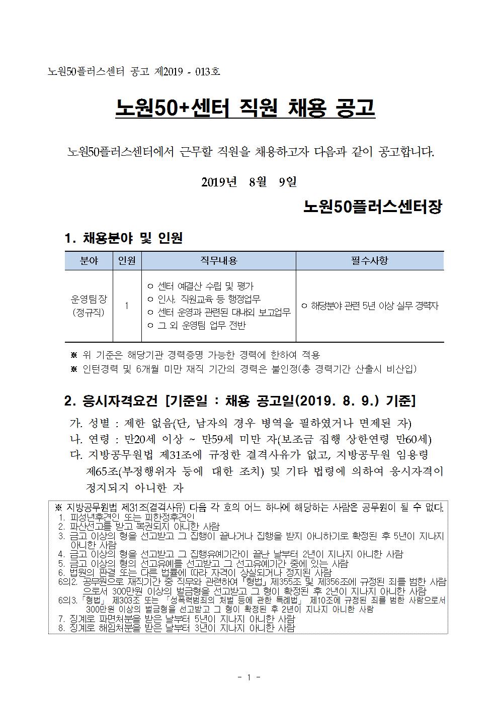 서울시 노원센터 | [채용]노원50플러스센터 직원 채용 공고