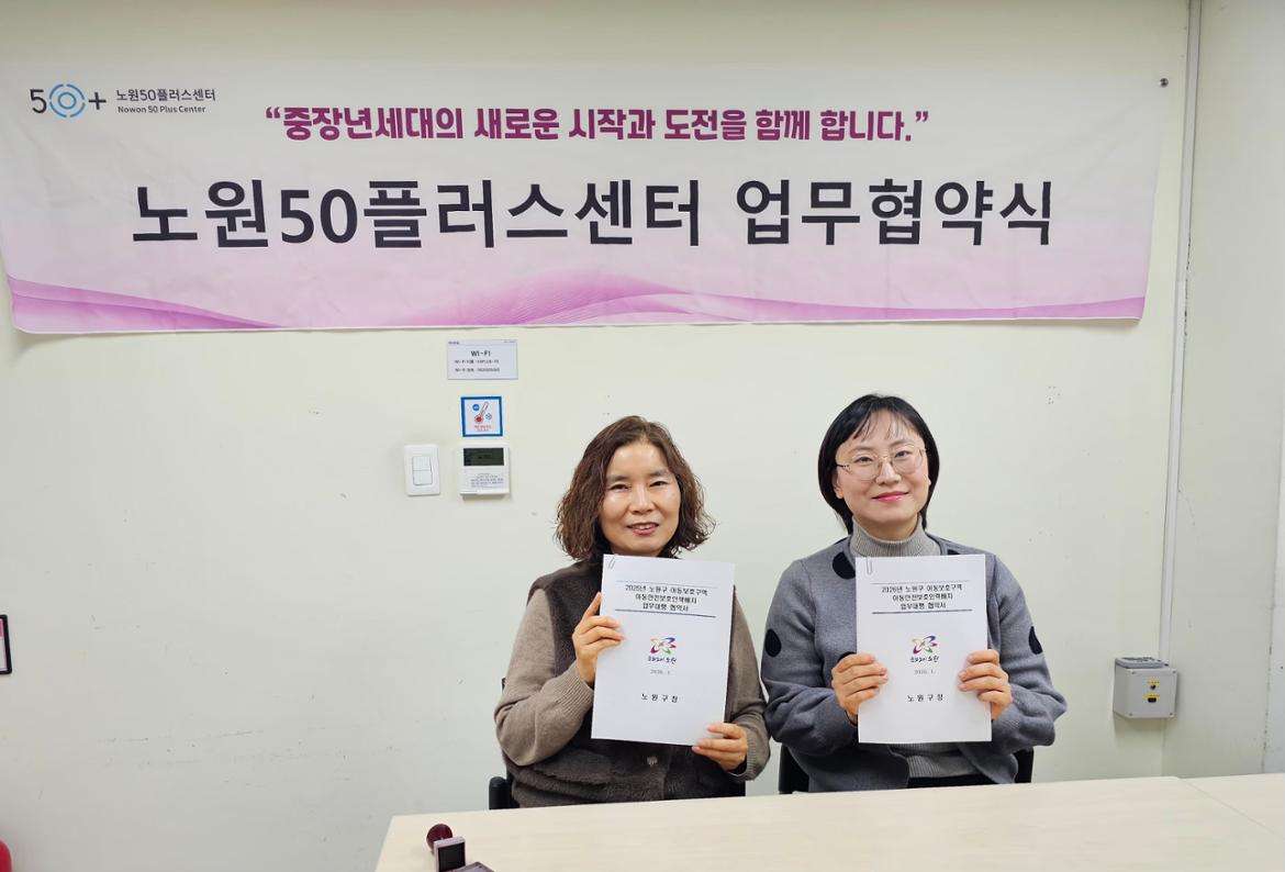 노원50플러스센터는 2026년 1월 20일, 노원구청과 함께 아동보호구역 아동안전보호인력 배치·운영을 위한 업무협약(MOU)을 체결했습니다.