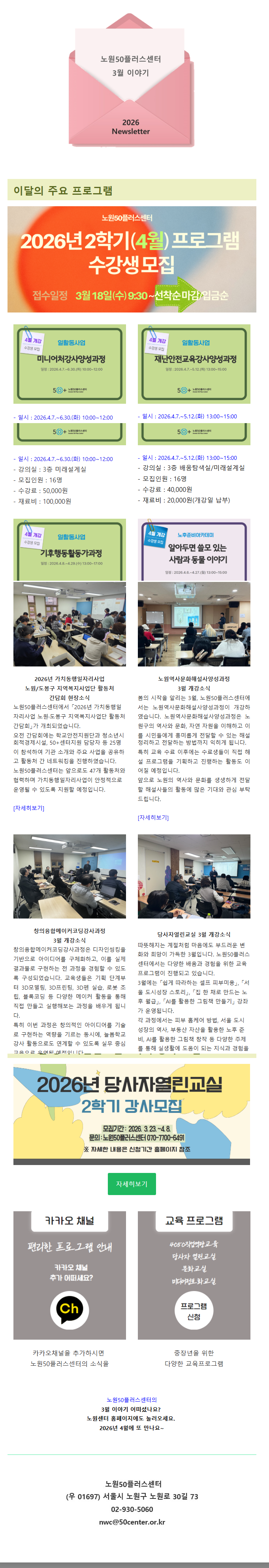서울시 노원센터 | 노원50플러스센터 뉴스레터 (2026년 3월)
