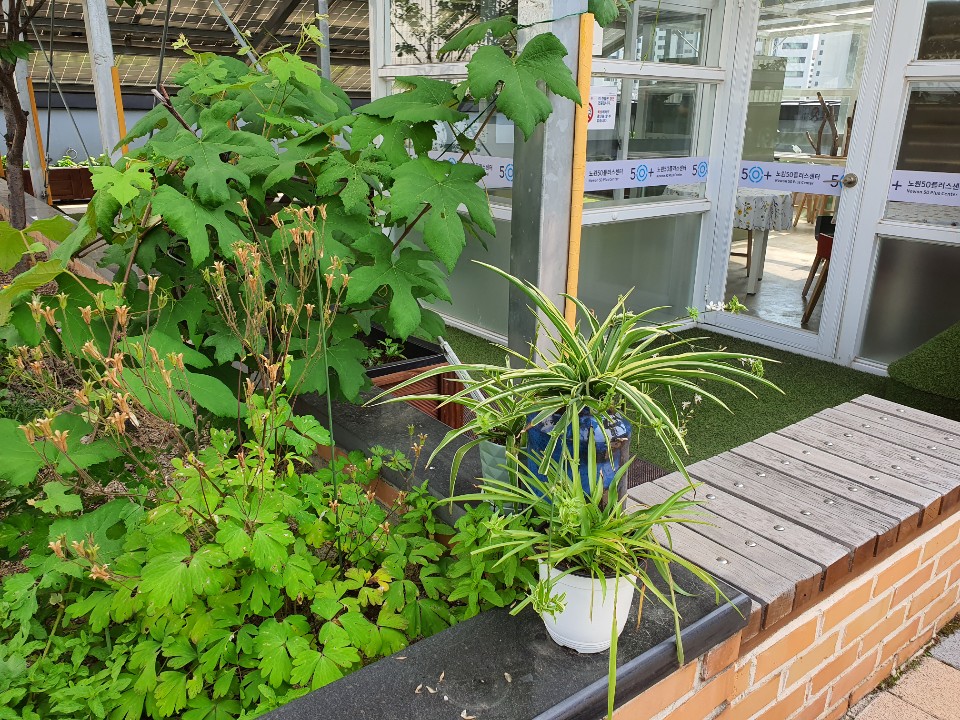 이 푸르른 옥상정원은 노원50플러스센터에 입주해 있는 인큐베이팅 단체 '힐링정원사회' 의 작품입니다.