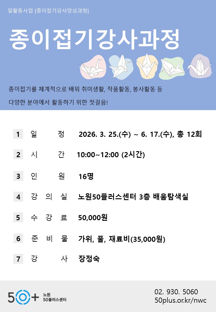 (10 회차) 2026.05.27(10:00 ~ 12:00) 배움탐색실(3F) 장정숙 [꽃접기]