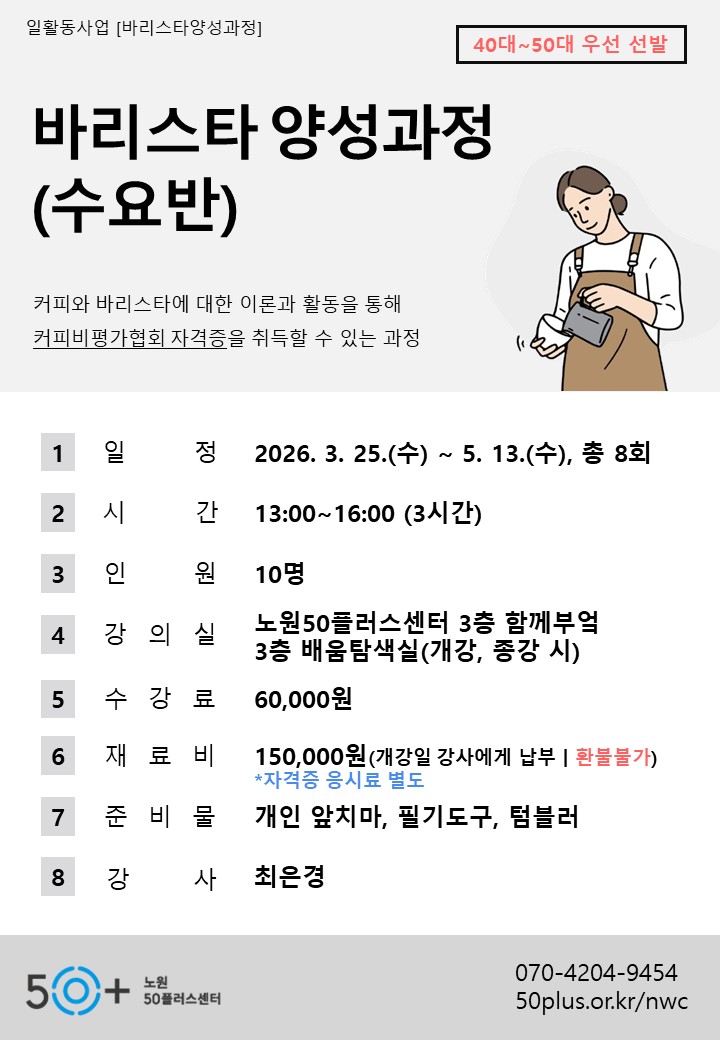 • - 서울시 면목4동 바리스타 교육 책임교수