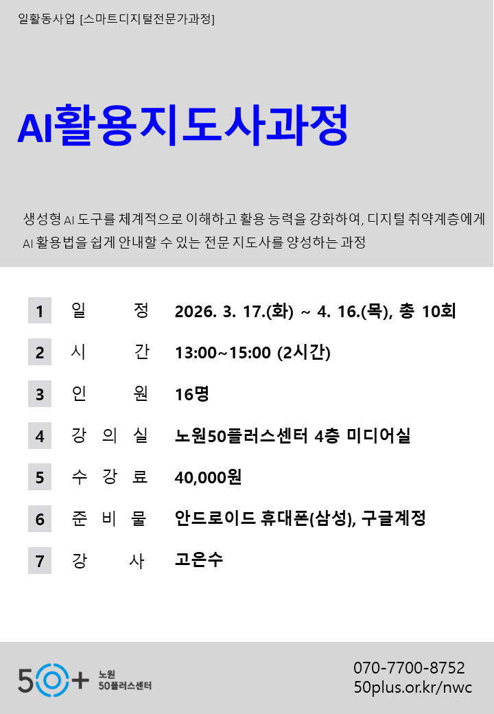 (4 회차) 2026.03.26(13:00 ~ 15:00) 미디어실(4F) 고은수 스마트폰 AI