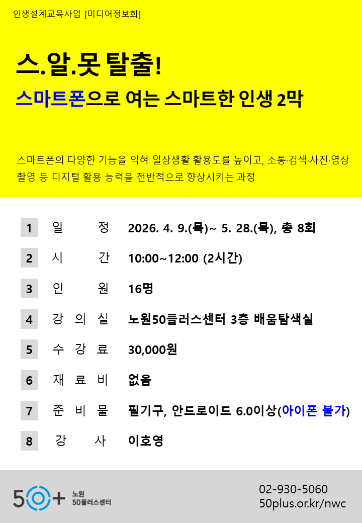 [미디어]스.알.못 탈출! 스마트폰으로 여는 스마트한 인생 2막(스마트폰 활용반)