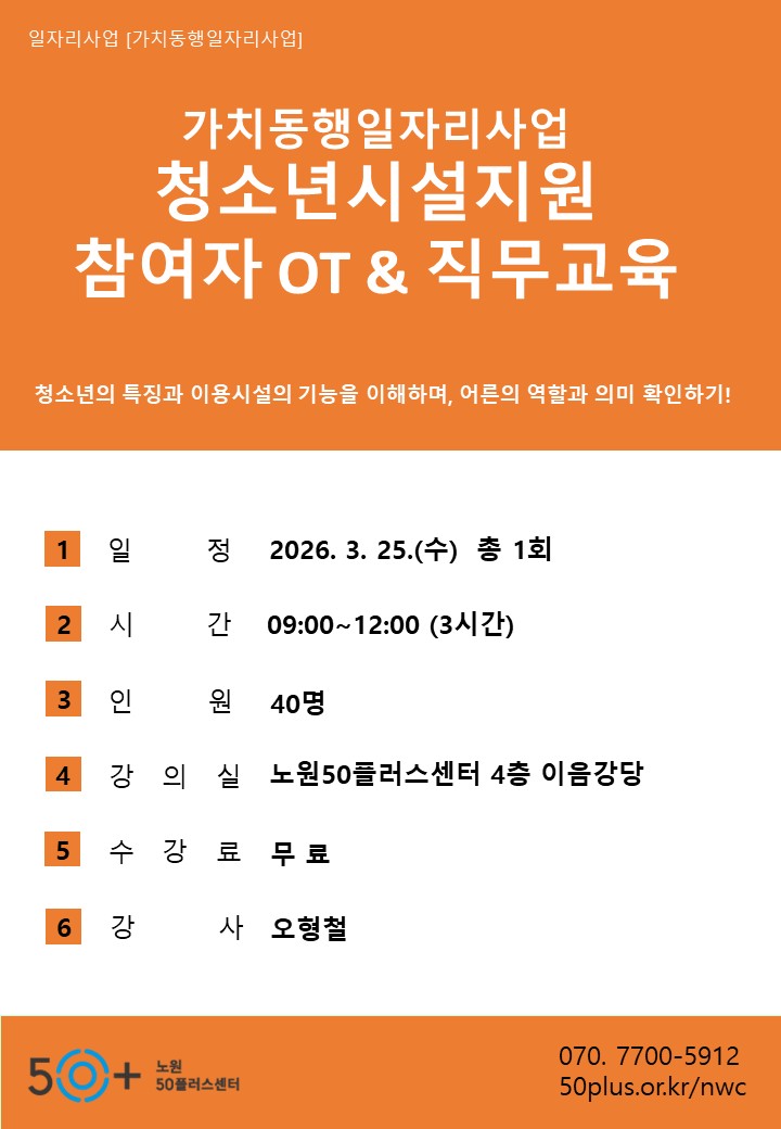 2026년 가치동행일자리지역복지사업단 청소년시설 OT 및 참여자 직무교육
