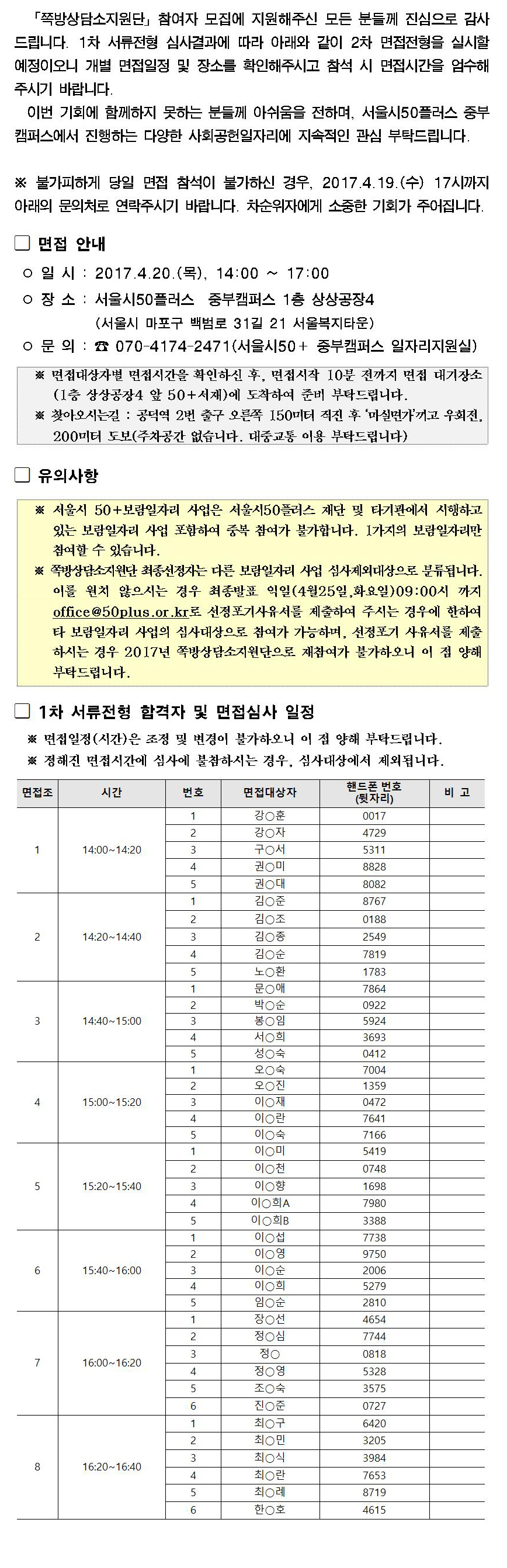[중부보람일자리] 쪽방상담소지원단 서류합격자 발표 및 면접 안내