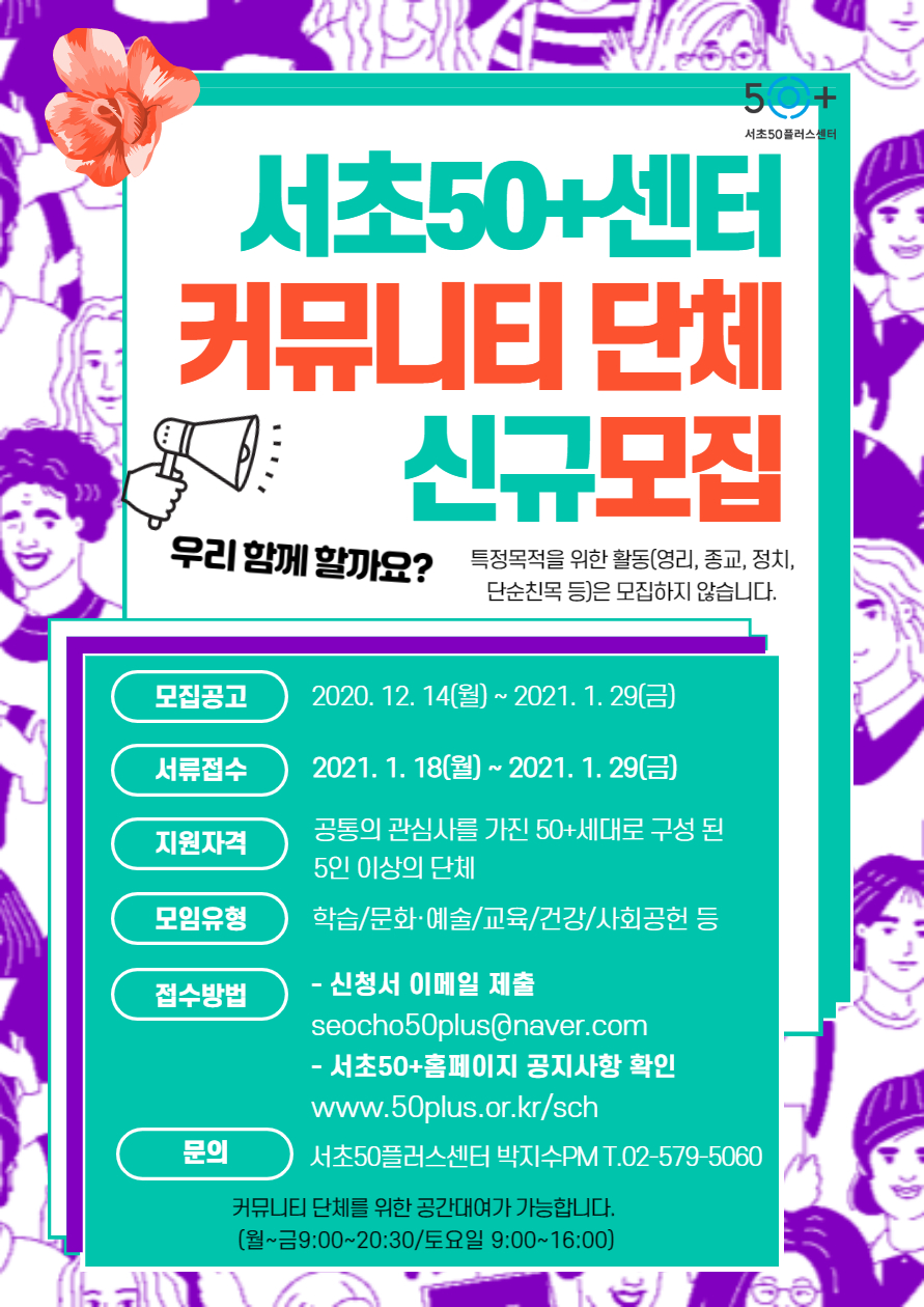 서초50플러스센터에서 커뮤니티(단체) 모집을 하오니 많은 관심 부탁드립니다!