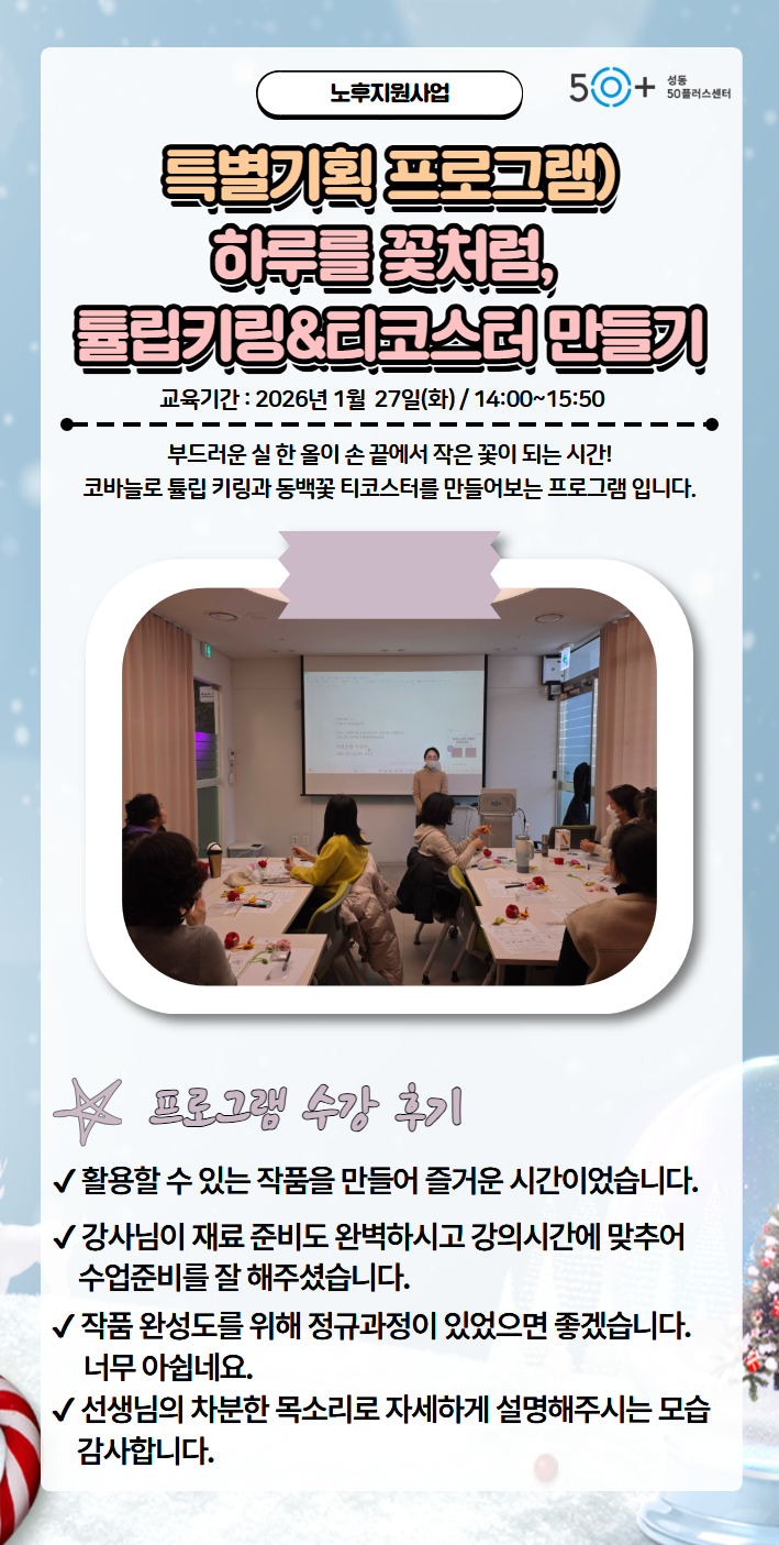 서울시 성동센터 | [1월 프로그램 수강후기] 특별기획 프로그램) 하루를 꽃처럼, 튤립키링&티코스터 만들기