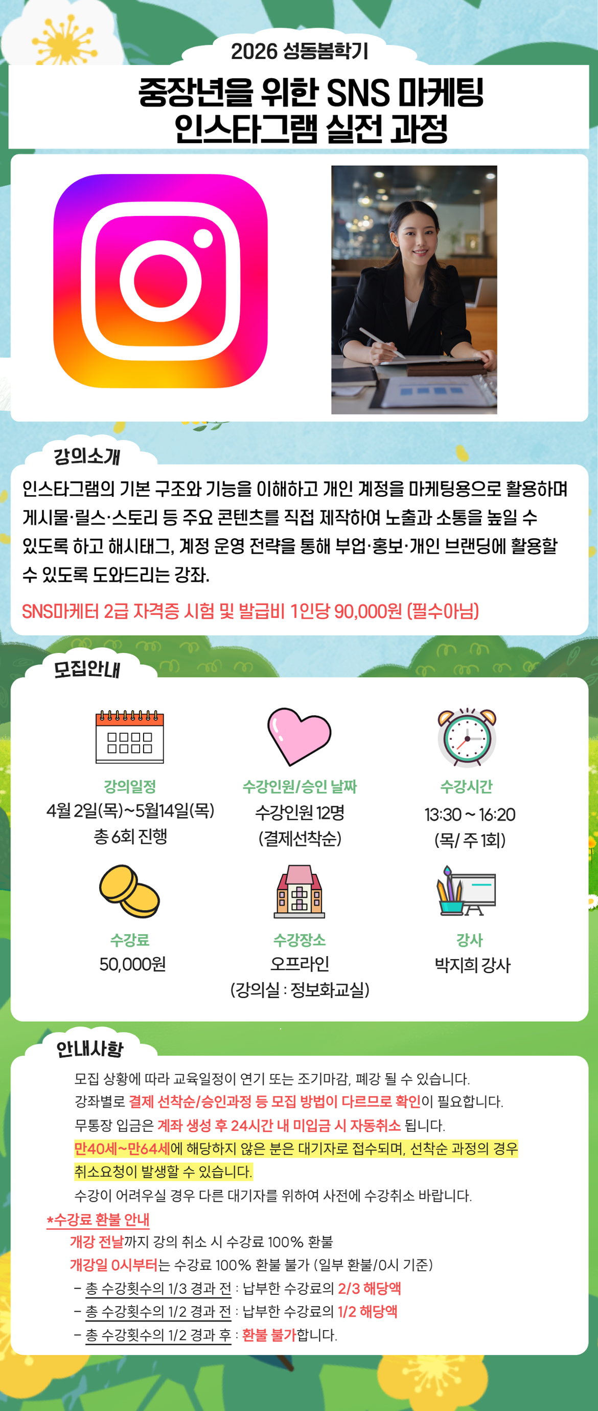 중장년을 위한 SNS 마케팅 – 인스타그램 실전 과정 (목, 13:30~16:20)