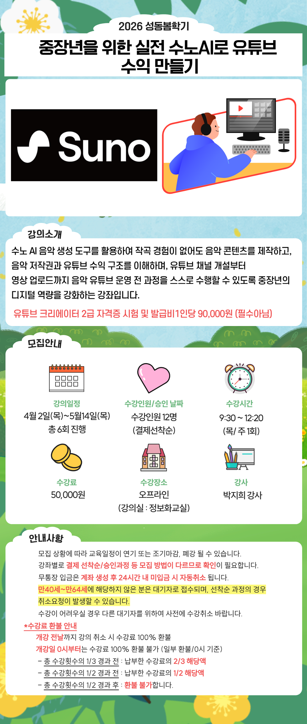 중장년을 위한 실전 수노AI로 유튜브 수익 만들기 (목, 9:30~12:20)