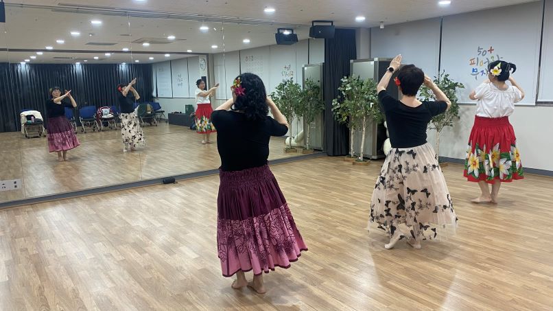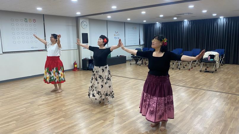 우리는 봄을 기다리며 마냥 훌라 연습하고 훈련합니다.