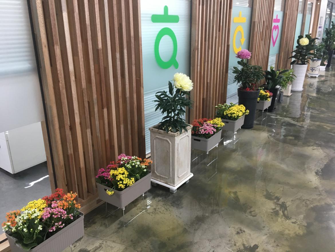 공기정화식물을 심은 상담실 앞 로비 화분부터 분갈이 했어요.