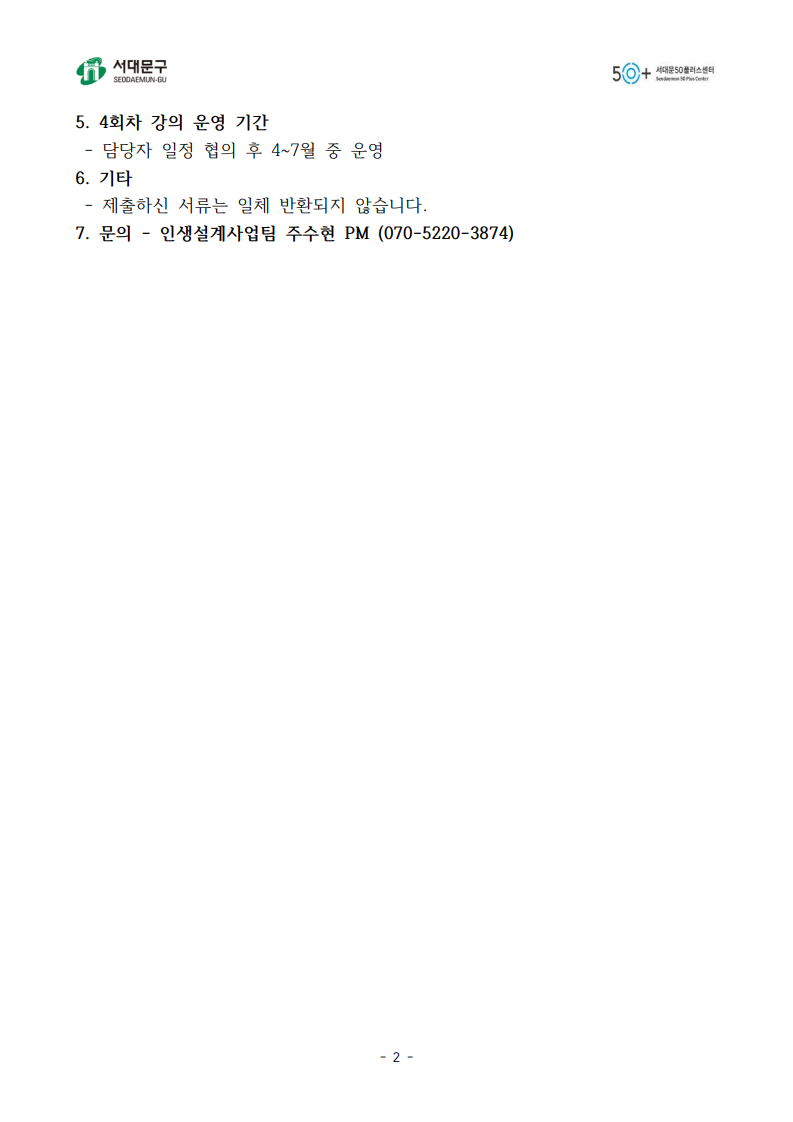 문의 : 인생설계사업팀 주수현 PM (☎070-5220-3874)