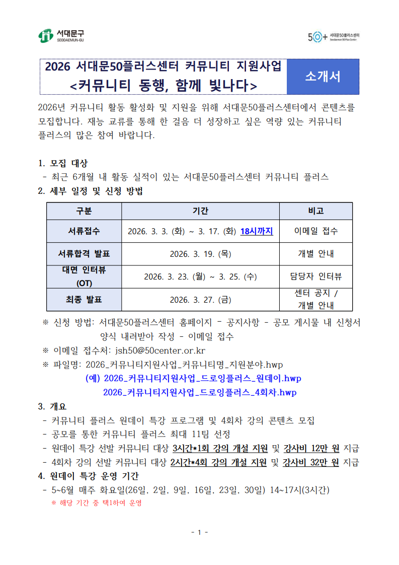 안내 자료와 신청서는 하단에서 다운받으실 수 있습니다.