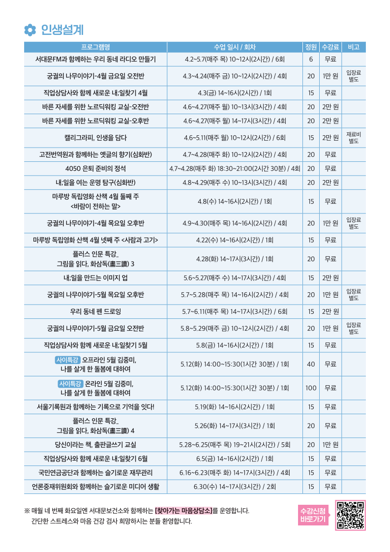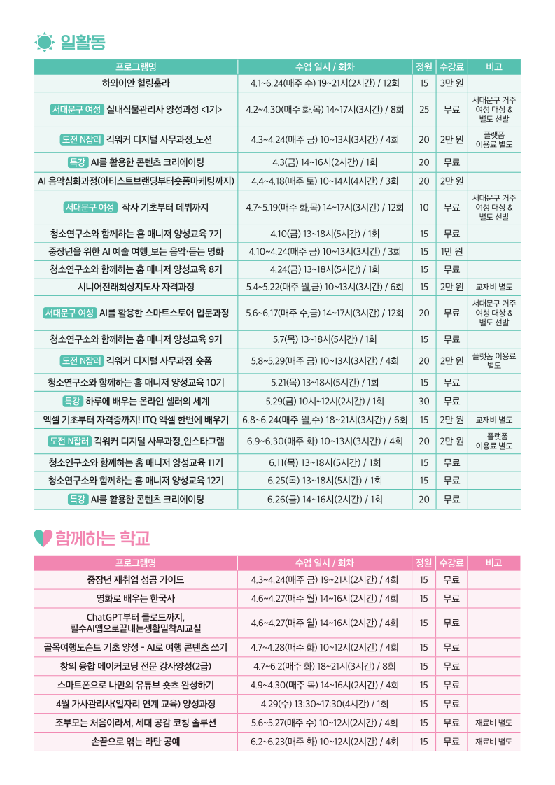 서울시 서대문센터 | 2026년 2학기 프로그램 리플렛