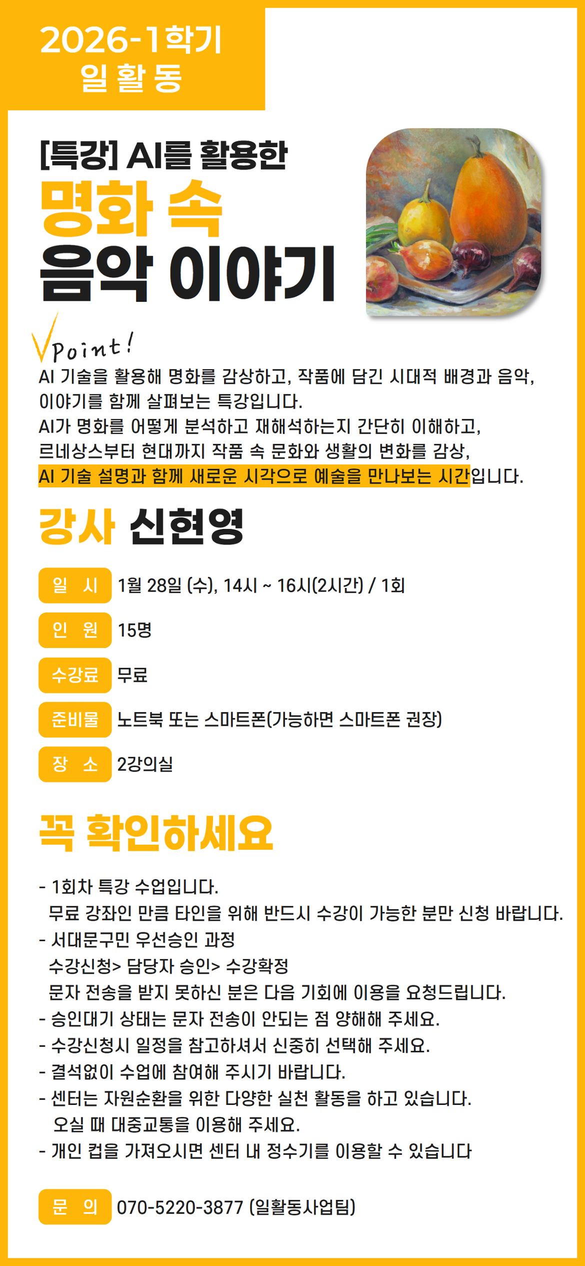(1 회차) 2026.01.28(14:00 ~ 16:00) 강의실2 신현영 명화의 감정과 음악의 언어