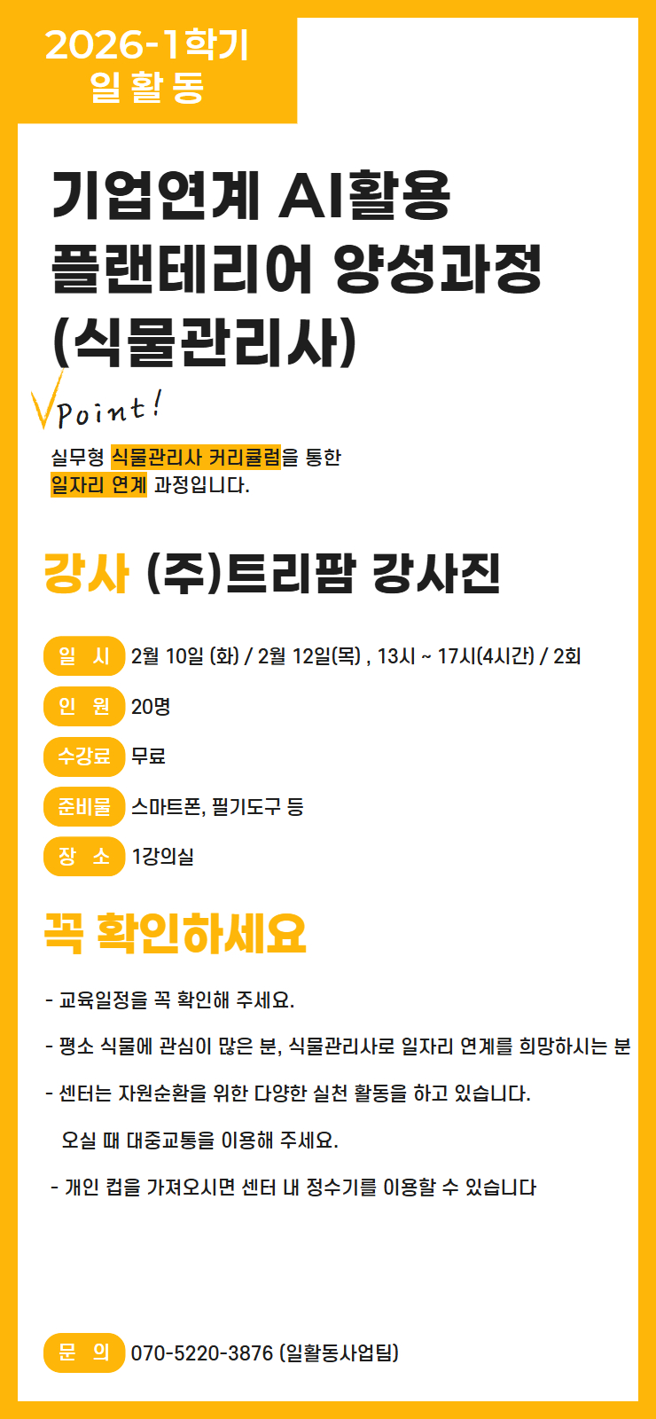 [(RISE)사업]명지전문대와 함께하는 기업연계 AI활용 플랜테리어 양성과정(식물관리사 과정)