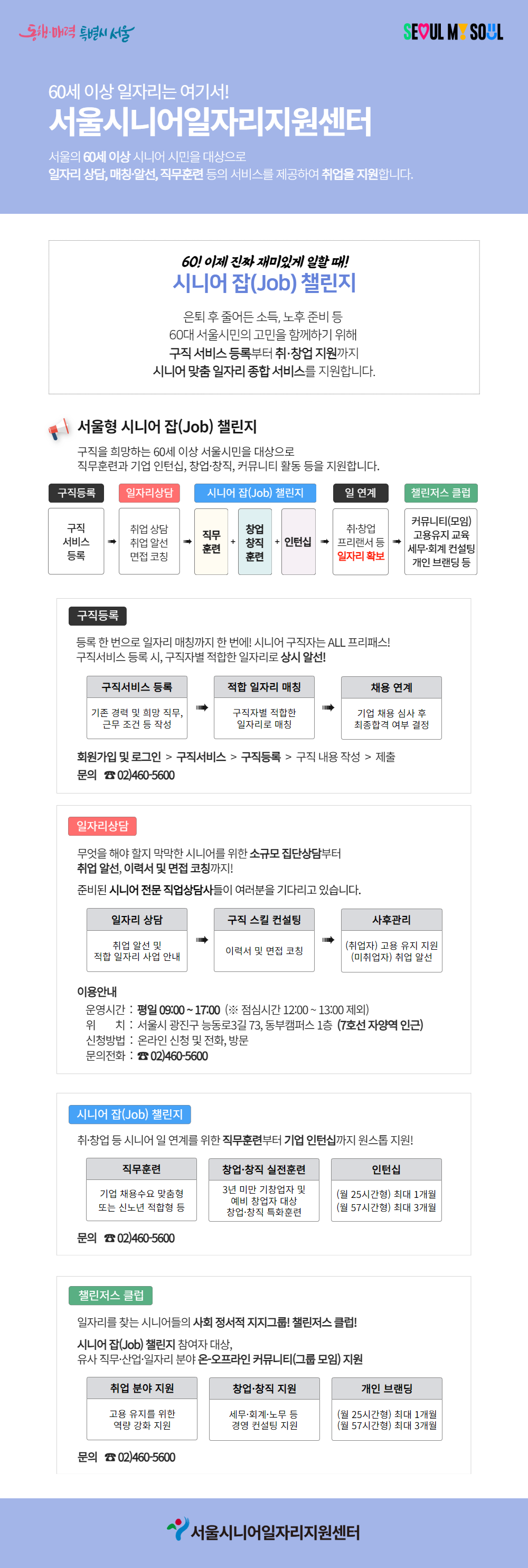 서울특별시청 50플러스포털 서울시50플러스 서부캠퍼스 서울시50플러스 중부캠퍼스 서울시50플러스 남부캠퍼스 서울시50플러스 북부캠퍼스 서울시50플러스 동부캠퍼스 노원50플러스센터 도심권50플러스센터 동작50플러스센터 영등포50플러스센터 서대문50플러스센터 성북50플러스센터 금천50플러스센터 강서50플러스센터 서초50플러스센터 강동50플러스센터 양천50플러스센터 성동50플러스센터 강북50플러스센터 관악50플러스센터 동대문50플러스센터 용산50플러스센터 시니어일자리지원센터 40대직업캠프 서울시 시니어 일자리 박람회 원격지원서비스