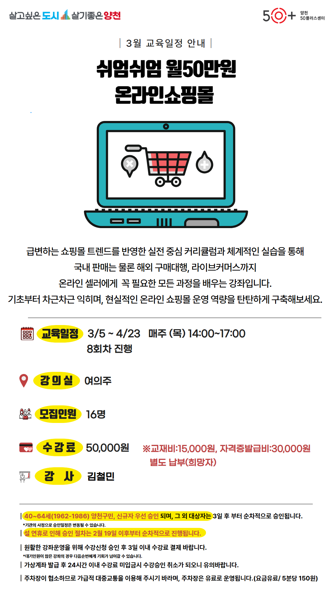 • - 강동50플러스센터 '무자본·무재고 온라인 쇼핑몰 창업 도전하기' 강의